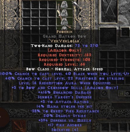 Diablo 2 Phoenix Grand Matron Bow - 3 B&C - 415% ED/350-399 DvM/15-21 FA/10-15 Red kaufen