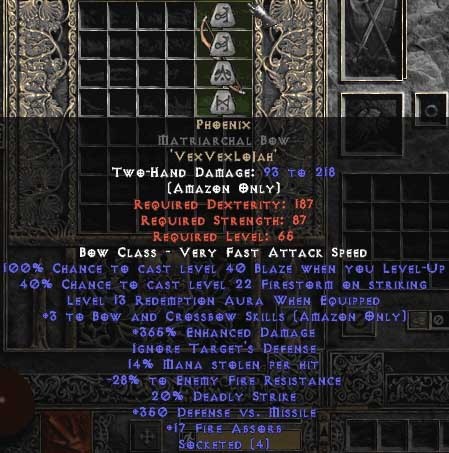 Diablo 2 Phoenix Matriarchal Bow - 3 B&C - 365-394% ED/350-400 DvM/15-21 FA/10-15 Red kaufen