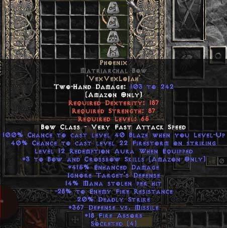 Diablo 2 Phoenix Matriarchal Bow - 3 B&C - 415% ED/350-399 DvM/15-21 FA/10-15 Red kaufen