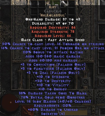 Diablo 2 Rift Caduceus - 3 Zeal/3 Fanat/3 Convict - 10 Stats - Perfect kaufen