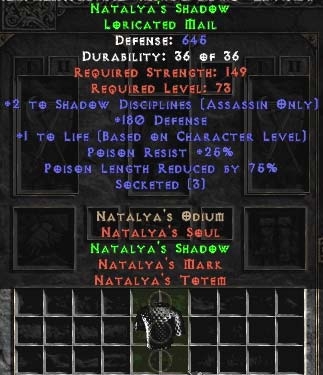 Diablo 2 Natalya's Shadow - 721 Def, +225 Def, 3 Soc - Perfect kaufen