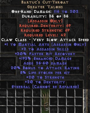 Bartuc's Cut-Throat - Ethereal - 190%+ ED |