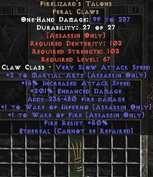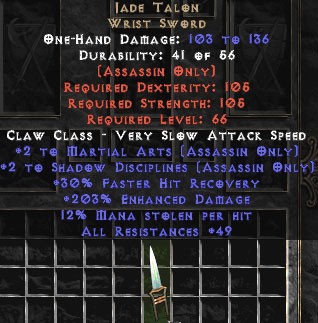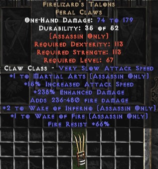 Witch-hunter's Greater Talons of Quickness - +2 Assassin/+3 Lightning Sentry/40% IAS |