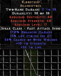 Buy Diablo II Bloodthief - +70% ED, 12% LL - Perfect